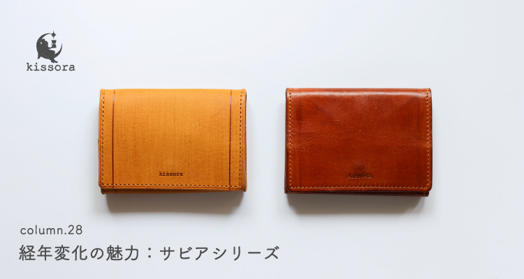 コラム・28 経年変化の魅力:サビアシリーズ キソラのコラム第28弾となる今回は『経年変化の魅力:サビアシリーズ編』です。キソラ製品の多くは、《タンニン鞣し(混合含む)+染料仕上げ+素上げ》で仕上げられ、革素材の特性を最 … 《column.28》経年変化の魅力:サビアシリーズ